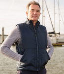 Polyester outer. Dark grey fleece lining.Polyester padding.Showerproof and windproof.Slightly padded deep collar.Collar high full length zip.Deep cut armholes.Inner chest pocket and media pocket.Deep patch pockets.Curved back hem.Cut out label.Zip access for decoration.