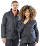 210T polyester with AC coating. 2x2 diamond quilted.Polyester padding and lining.Showerproof and windproof.Corduroy inner collar.Full length zip with studded storm flap.Two patch pockets with stud closure.Inner pocket.Jetted side vents.Bound open cuffs.Open hem.Cut out label.Access for decoration.