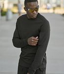 60% ringspun cotton/40% polyester. Unbrushed.Drop shoulder style.Taped neck.Left sleeve SBS zip pocket.Self fabric cuffs and hem.