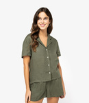 Spasso Spasso Ladies Short Sleeve Linen Bowling Collar Shirt SP523